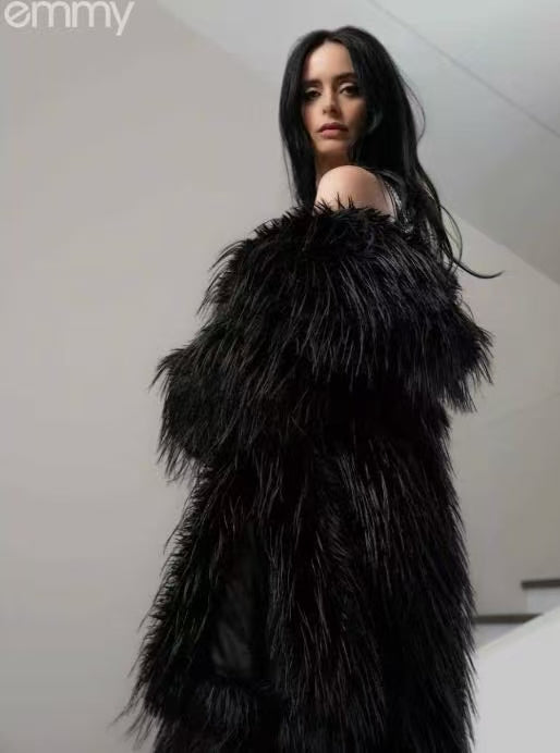 KRYSTEN RITTER IN HEURUEH COAT FOR EMMY MAGAZINE.