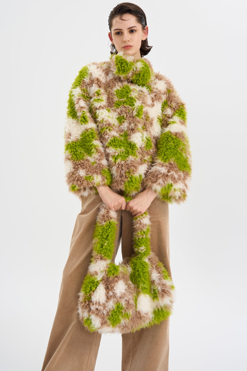 Materials: Preferential use of recycled plastic-bottle yarns for plush velvet, recycled nylon from recovered fishing nets, and next-gen leather alternatives.